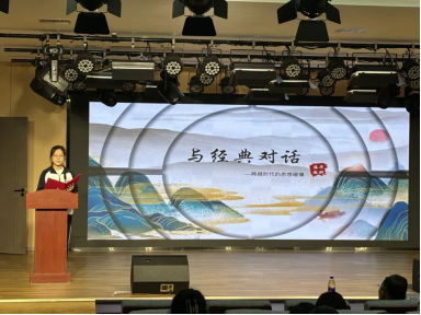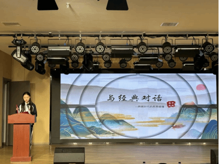 活动伊始,学生代表们带来了多元主题的精彩分享。从《道德经》“道法自然”的深邃哲学思辨,探寻古人的智慧结晶;到《红岩》中革命先烈坚如磐石的信仰力量,感受那段波澜壮阔的历史;从史铁生《我与地坛》里对生命的深刻感悟,体会命运与思考的交织;再到《宽容》一书中展现的人类文明演进历程,拓宽视野与格局。他们借助精心自制的PPT,以精练且生动的表达,带领在场师生穿越时空,与经典著作展开深度对话。