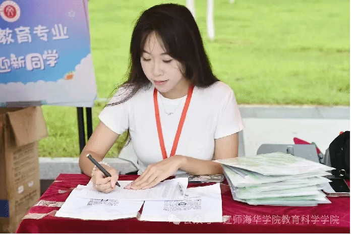 热情洋溢的学长学姐主动报名担任迎新志愿者,迅速搭建起教育科学学院与新同学之间的桥梁,完成新生注册、缴费、领取生活物品、登记住宿等多项工作。各个报道环节均有学院领导、新生辅导员和志愿者们的贴心服务和倾力相助,确保每一位新生都能顺利完成开学报道。