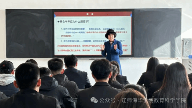 2024年11月27日,我院党支部与数学科学学院党支部、体育学院党支部特邀请辽宁师范大学海华学院学习贯彻党的二十届三中全会精神宣讲团成员马克思主义学院张慧欣教授为三个学院师生进行了以“深入领会党的二十届三中全会精神,凝聚全面深化改革的强大动力”为主题的宣讲会。教育科学学院师生党员、发展对象、积极分子积极参加了此次宣讲会。